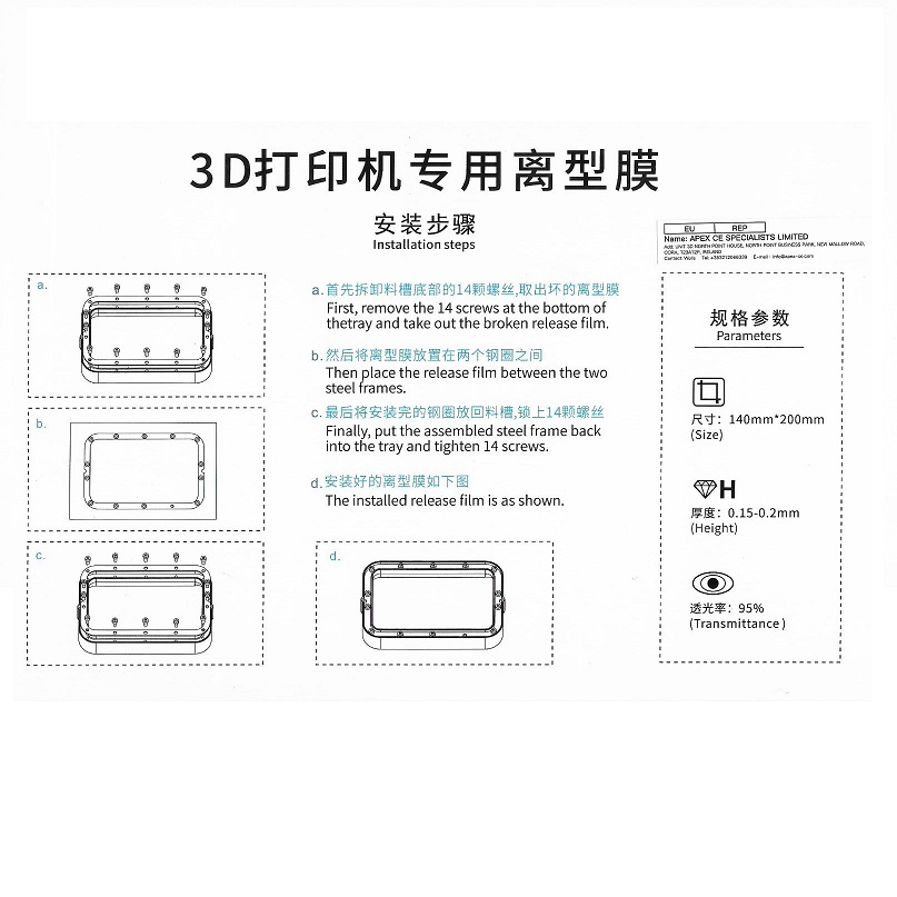 LD-001/LD-002/LD-002R/LD-002H/Halot One Creality Light-Curing FEP Release Film